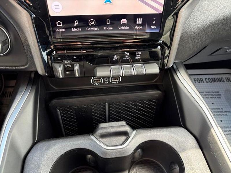 New Arrival! Diamond Black Crystal Pearlcoat 115V Auxiliary Power Outlet, 115V Auxiliary Rear Power Outlet, 12'' Touchscreen Display, 2nd Row In Floor Storage Bins, 3 Rear Seat Head Restraints, 4 Way Front Headrests, 400W Inverter, 4G LTE Wi-Fi Hot Spot, 9 Amplified Speakers w/Subwoofer, Air Conditioning ATC w/Dual Zone Control, Apple CarPlay, Auto Power-Folding Mirrors, Auto-Dimming Exterior Driver Mirror, Auto-Dimming Rear-View Mirror, Big Horn Level 2 Equipment Group, Black Exterior Mirrors, Black Premium Power Mirrors, Body Color Fender Flares, Bucket Seats, Center Console Parts Module, Cluster 7.0'' TFT Color Display, Configurable Drive Mode, Connected Travel & Traffic Services, Connectivity - US/Canada, Convex Wide-Angle Exterior Mirror Insert, Deluxe Cloth Bucket Seats, Disassociated Touchscreen Display, Exterior Mirrors Courtesy Lamps, Exterior Mirrors w/Heating Element, Exterior Mirrors w/Supplemental Signals, Front Seat Back Map Pockets, Full Length Floor Console, Global Telematics Box Module (TBM), Glove Box Lamp, Google Android Auto, GPS Antenna Input, GPS Navigation, HD Radio, Heated Front Seats, Heated Steering Wheel, Integrated Center Stack Radio, Integrated Voice Command w/Bluetooth, Leather Wrapped Steering Wheel, LED Dome Lamp w/On/Off Switch, LED Footwell Lighting, Manual Adjust 4-Way Front Passenger Seat, Media Hub w/2 Charge Only USBs, Overhead LED Lamps, Power 2-Way Driver Lumbar Adjust, Power Adjust 8-Way Driver Seat, Power Adjustable Pedals, Premium Overhead Console, Radio: Uconnect 5 Nav w/12.0'' Display, Rear 60/40 Folding Seat, Rear Center Armrest, Rear Power Sliding Window, Rear Window Defroster, Remote Tailgate Release, Secondary Active Grille Shutters, Security Alarm, SiriusXM Radio Service, SiriusXM w/360L, Steering Wheel Mounted Audio Controls, Sun Visors w/Illuminated Vanity Mirrors, USB Host Flip, Wheels: 20'' x 9'' Aluminum Chrome Clad (WRK), Wireless Charging Pad.