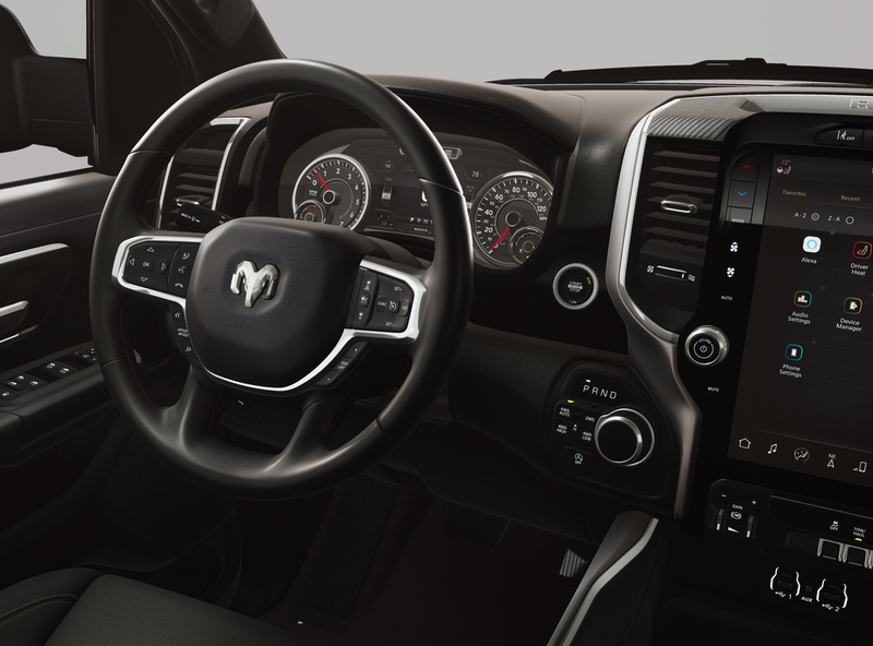 Coming Soon! Granite Crystal Metallic Clearcoat 115V Auxiliary Power Outlet, 115V Auxiliary Rear Power Outlet, 12'' Touchscreen Display, 2nd Row in Floor Storage Bins, 3 Rear Seat Head Restraints, 4 Way Front Headrests, 400W Inverter, 4G LTE Wi-Fi Hot Spot, 9 Amplified Speakers with Subwoofer, Air Conditioning ATC with Dual Zone Control, Apple CarPlay, Auto Power-Folding Mirrors, Auto-Dimming Exterior Driver Mirror, Auto-Dimming Rear-View Mirror, Big Horn Level 2 Equipment Group, Black Exterior Mirrors, Black Premium Power Mirrors, Body Color Fender Flares, Bucket Seats, Center Console Parts Module, Cluster 7.0'' TFT Color Display, Configurable Drive Mode, Connected Travel and Traffic Services, Connectivity - US/Canada, Convex Wide-Angle Exterior Mirror Insert, Deluxe Cloth Bucket Seats, Disassociated Touchscreen Display, Exterior Mirrors Courtesy Lamps, Exterior Mirrors with Heating Element, Exterior Mirrors with Supplemental Signals, Front Seat Back Map Pockets, Full Length Floor Console, Global Telematics Box Module, Glove Box Lamp, Google Android Auto, GPS Antenna Input, GPS Navigation, HD Radio, Heated Front Seats, Heated Steering Wheel, Integrated Center Stack Radio, Integrated Voice Command with Bluetooth, Leather Wrapped Steering Wheel, LED Dome Lamp with on/Off Switch, LED Footwell Lighting, Manual Adjust 4-Way Front Passenger Seat, Media Hub with 2 Charge Only USBs, Overhead LED Lamps, Power 2-Way Driver Lumbar Adjust, Power Adjust 8-Way Driver Seat, Power Adjustable Pedals, Premium Overhead Console, Radio: Uconnect 5 Navigation with 12.0'' Display, Rear 60/40 Folding Seat, Rear Center Armrest, Rear Power Sliding Window, Rear Window Defroster, Remote Tailgate Release, Security Alarm, SiriusXM Radio Service, SiriusXM with 360L, Steering Wheel Mounted Audio Controls, Sun Visors with Illuminated Vanity Mirrors, Universal Garage Door Opener, USB Host Flip, Wheels: 20'' x 9'' Aluminum Chrome Clad.